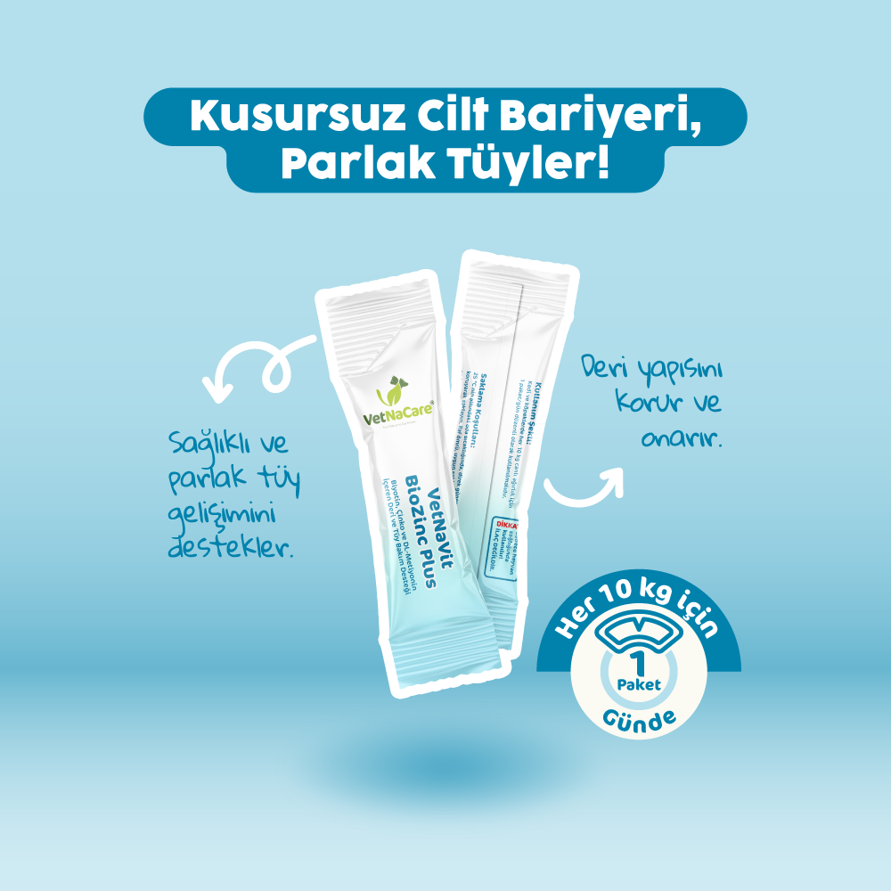 Tüy ve deri problemleri, evcil hayvanlarda en sık karşılaşılan sorunlardan biridir. VetNaVit BioZinc Plus, içerdiği biyotin ve çinko ile deri bariyerini desteklerken, DL-metiyonin sayesinde tüy yapısının güçlenmesine katkı sağlar. Bu sayede hem estetik görünüm hem de genel sağlık açısından etkili bir çözüm sunar.